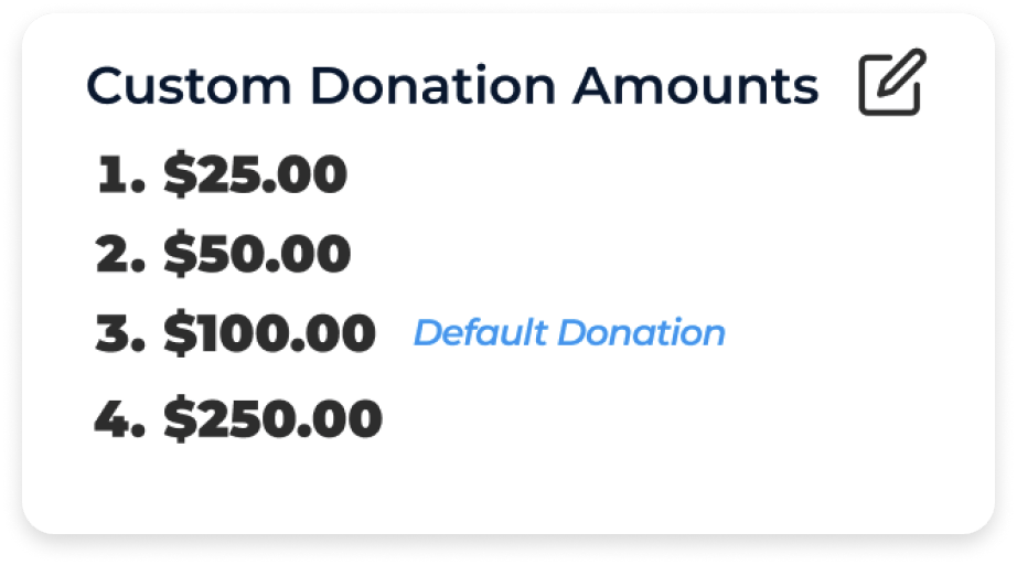 Partners can customize the default donation amounts based on special occasions like anniversaries and birthdays.